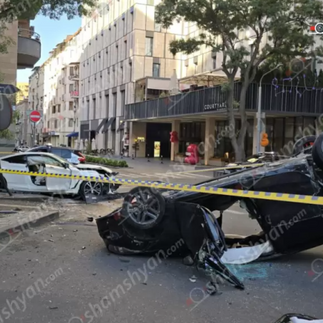 Երևանի կենտրոնում բախվել են «Infiniti»-ն ու «Kia Forte»-ն․ վերջինը գլխիվայր շրջվել է․ կան տուժածներ